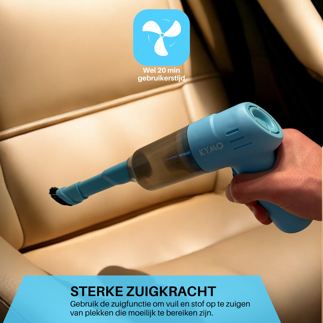 De Kymo Kruimeldief heeft een krachtige 100W motor voor het snel en efficiënt verwijderen van stof, vuil en haren. Dit maakt hem perfect voor snelle schoonmaakbeurten in huis of de auto.